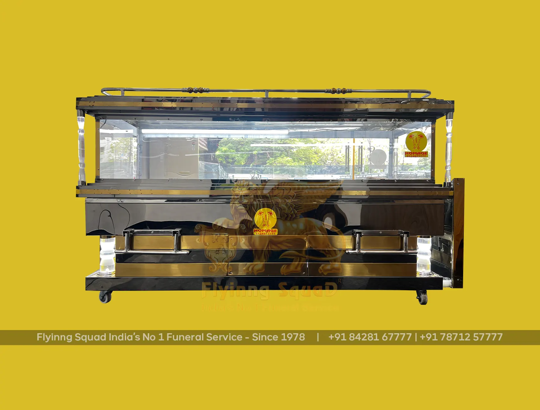 Flyinng Squad, a leader in mobile freezer box innovation, has designed, engineered(1996) and patented (No.180768 - 11th November 1999) mobile freezer boxes in various sizes and types, including VIP and VVIP models. Additionally, we have developed specialized mobile freezer boxes for pet animals to ensure the proper preservation of cherished companions.